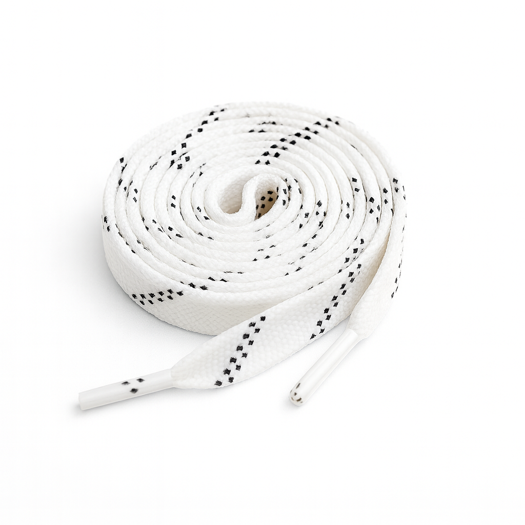 Die Schnürsenkel aus Baumwolle sind weiß und in verschiedenen Längen und Verarbeitungen erhältlich.